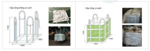 Bao có thể chịu tải lên đến 2 tấn, đảm bảo an toàn khi nâng hạ bằng cẩu hoặc xe nâng.